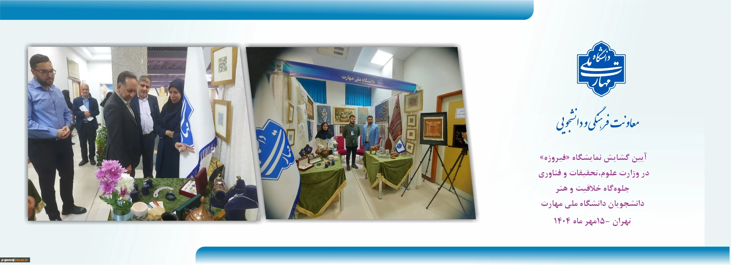 امتیاز دهید : تجلی خلاقیت و هنر دانشجویان دانشگاه ملی مهارت: آیین گشایش نمایشگاه «فیروزه» در وزارت علوم، تحقیقات و فناوری 2 چهارشنبه 16 مهر 1404 ساعت 12:56