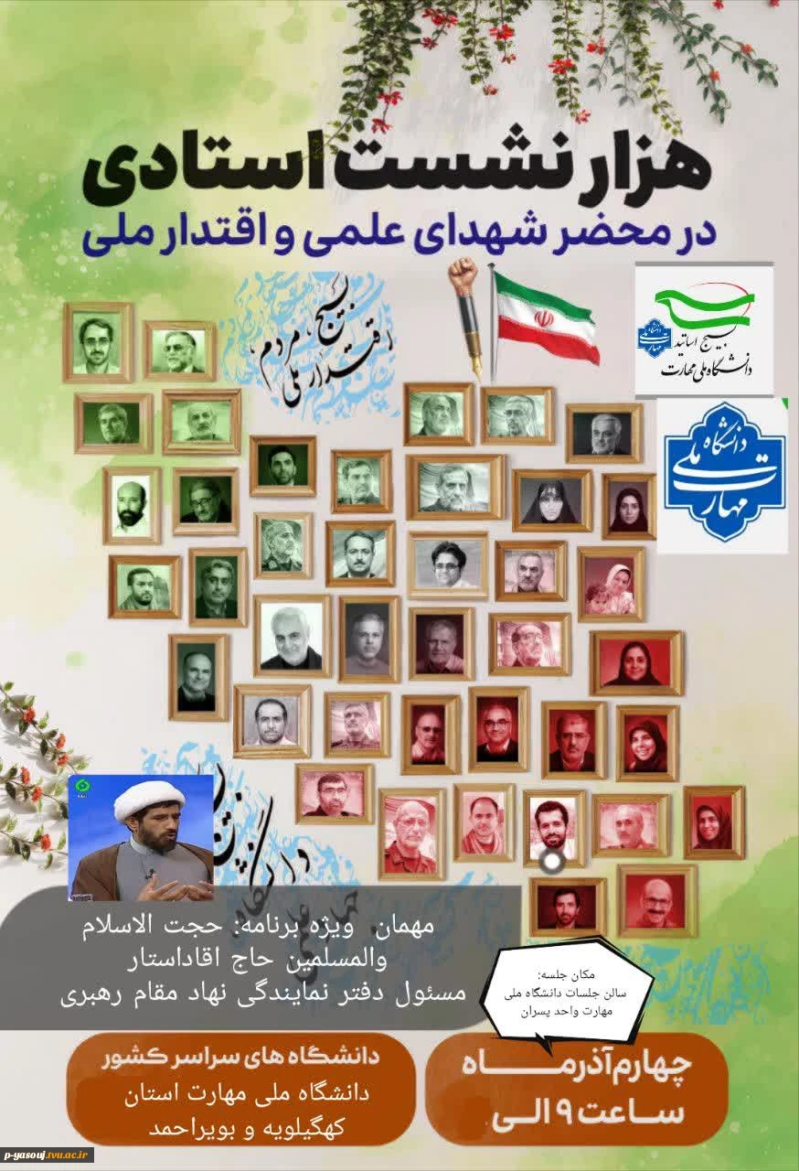 امتیاز دهید : به مناسبت هفته بسیج صورت گرفت: برگزاری نشستی تحت عنوان 1000نشست استادی در محضر شهدای علمی و اقتدار ملی در دانشگاه ملی مهارت استان کهگیلویه و بویراحمد 3 چهارشنبه 5 آذر 1404 ساعت 10:05