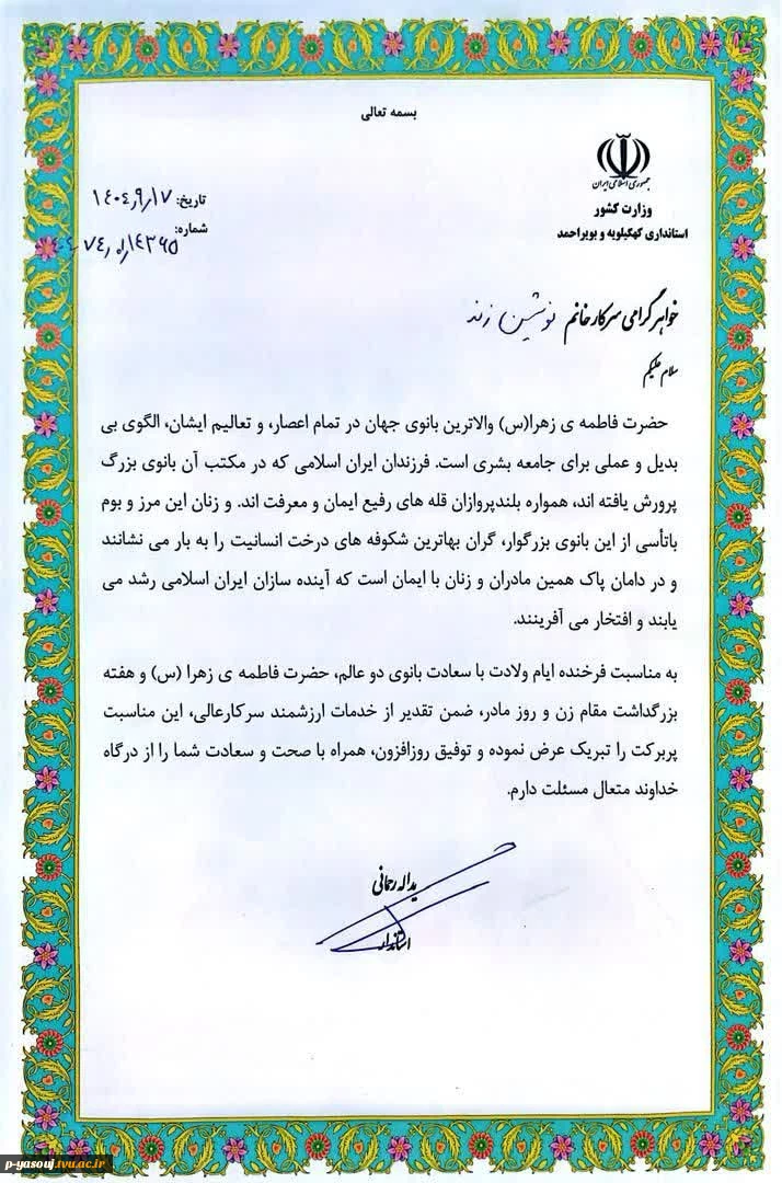 امتیاز دهید : تجلیل استاندار کهگیلویه و بویراحمد از مشاور امور بانوان دانشگاه ملی مهارت استانداری کهگیلویه و بویرحمد 2 یکشنبه 23 آذر 1404 ساعت 13:10